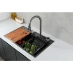 Chiuvetă modernă de bucătărie culoare :negru , multifuncțională, duș extractibil, inox, calitate premium, accesorii incluse dimensiuni 750*460*220mm