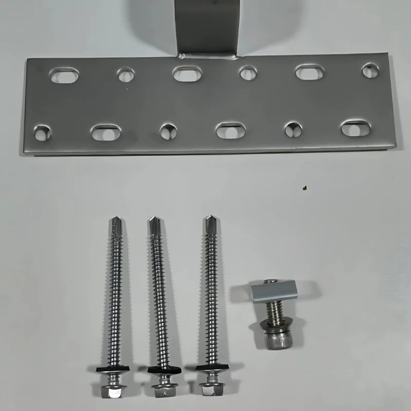 Clema din inox utilizata pentru sustinerea panourilor fotovoltaice pe acoperisurile care sunt invelite cu tigla ceramica + 3 suruburi autoforante de 6X75 si 1 piulita D.