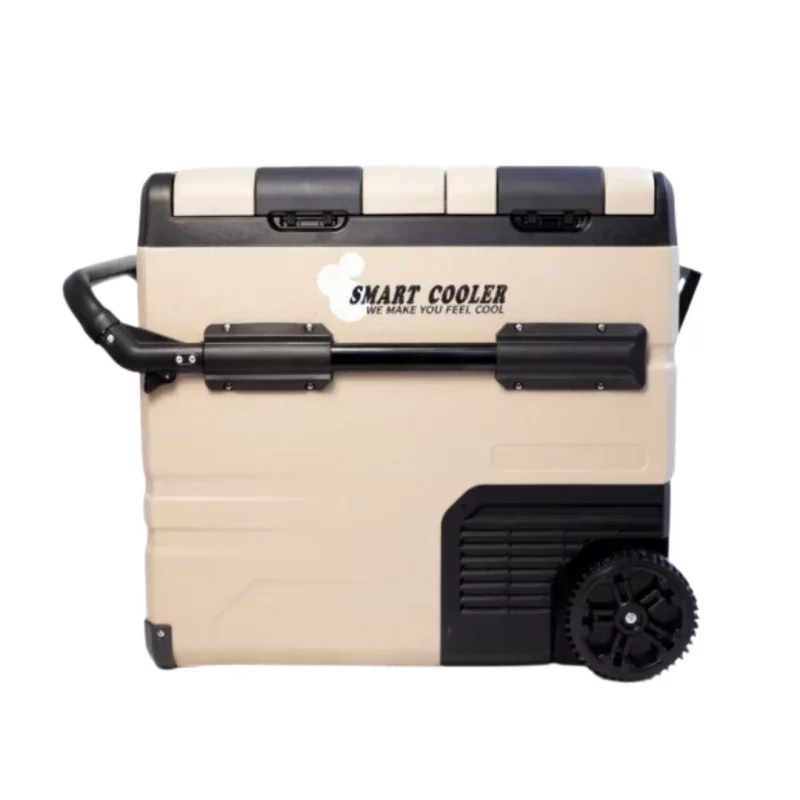 Convenabil pentru calatorie: frigiderul nostru auto SMART COOLER poate fi utilizat pentru camioane, vehicule, calatorii rutiere, pescuit, rulote, cabane. Designul rotilor si al barei de tractiune, este usor de luat oriunde.