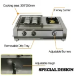 Gratar – KDM02+1, 2 arzatoare+1 zona de gatit ,gaz,dimensiune 700 X 400 X 220 mm, otel inoxidabil