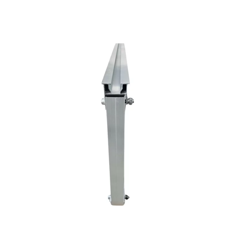 Suport triunghiular pentru montarea panourilor fotovoltaice pe un acoperis plat sau un acoperis cu o panta usoara. Produsul permite montarea panourilor pe verticala, unghiul de inclinare reglabil 15° si L 1190 asigura pozitionarea optima a suprafetei panoului in raport cu soarele.